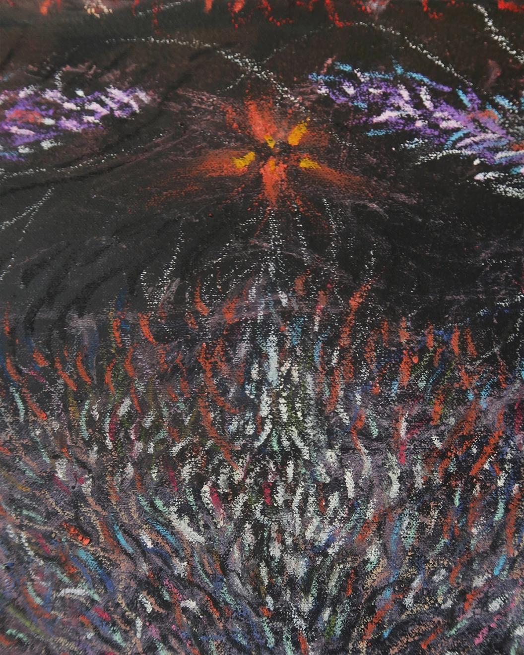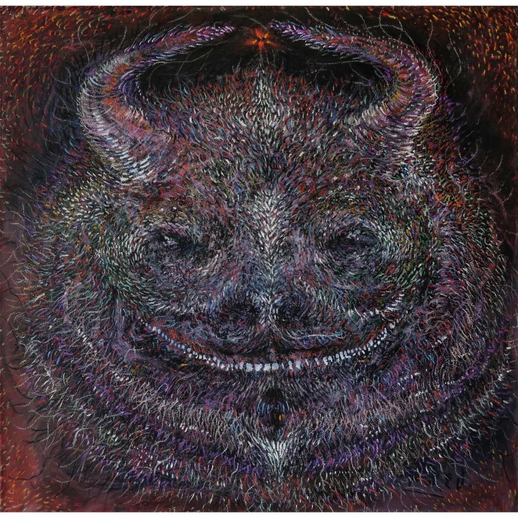 Head 85x85 cm, сanvas, acryl, oil pastel 2024
