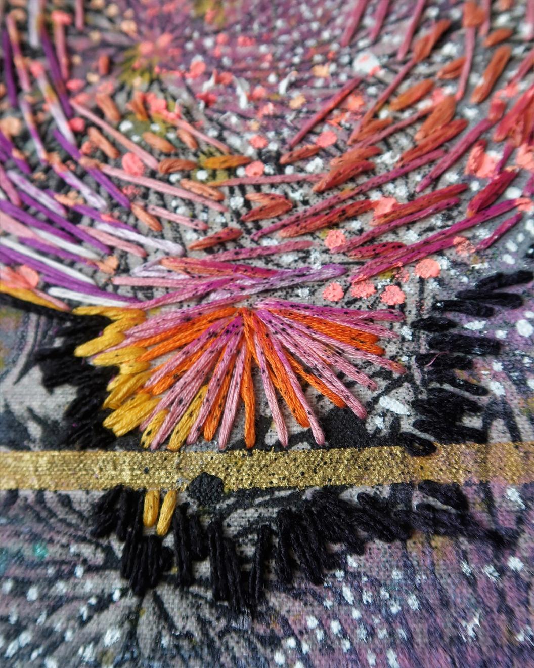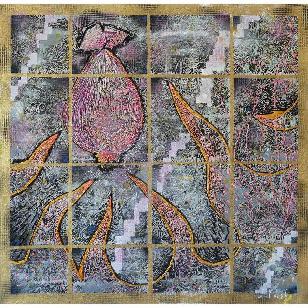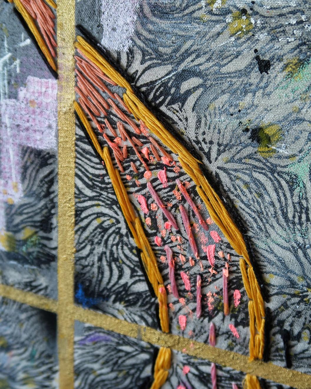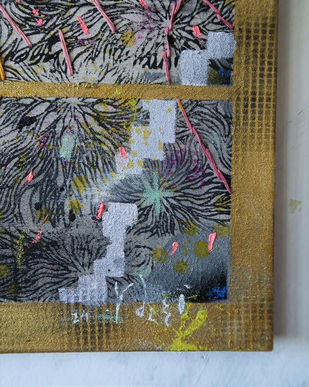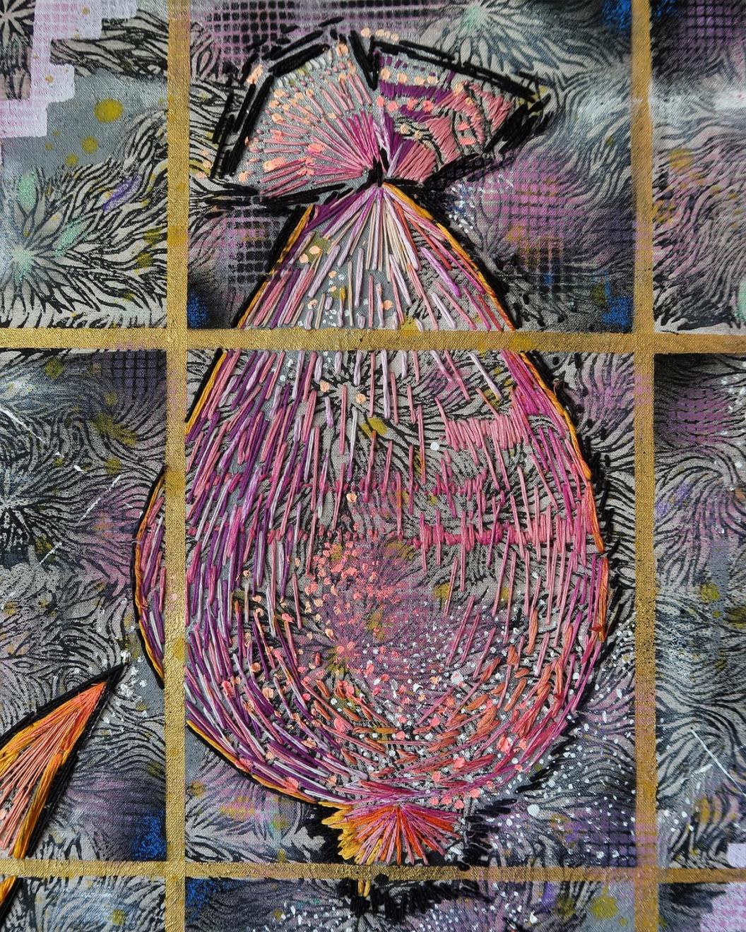 Hot, hot 90x85 cm, сanvas, acryl, threads, mixed media 2024