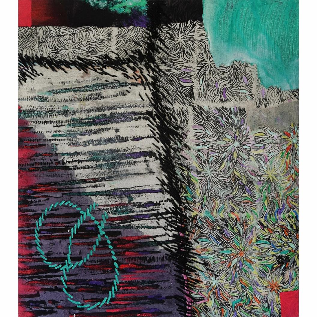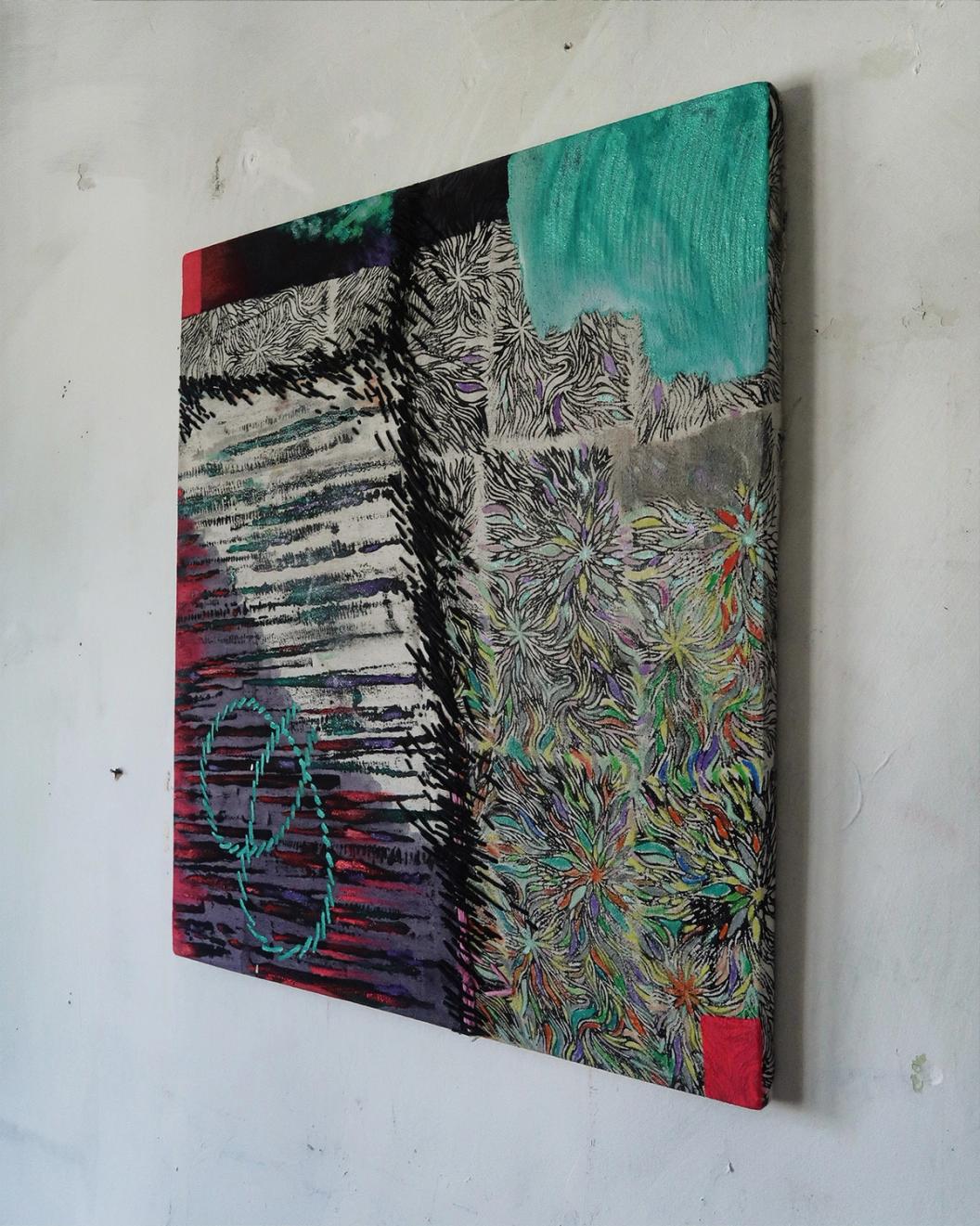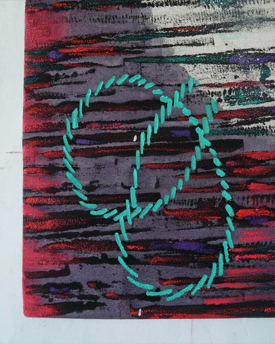 Under the clasp 64x56 cm, сanvas, oil, spray paint, mixed media 2024
